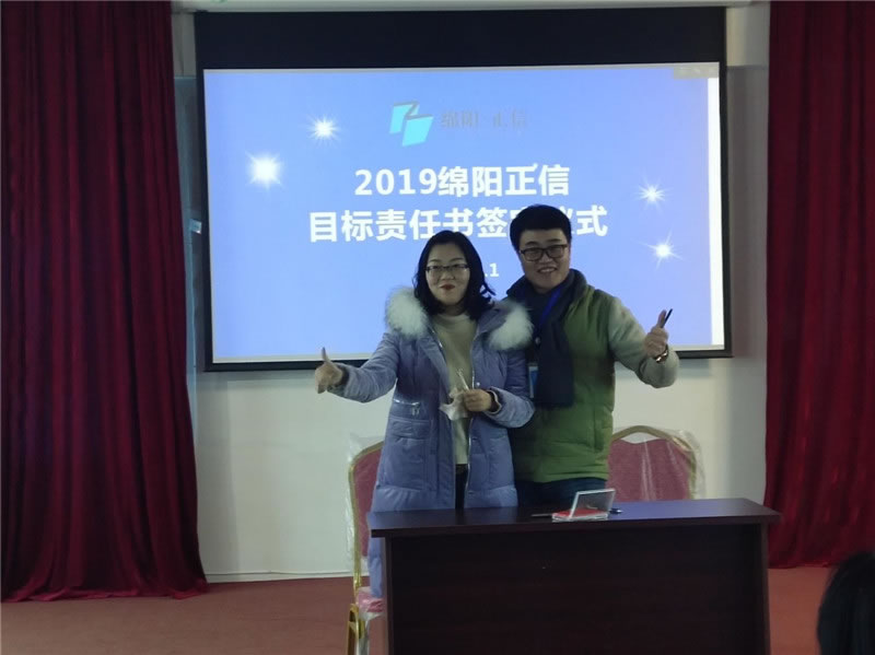 【綿陽正信·造價部消息】2019年1月23日,綿陽正信召開了2019年的第一次員工大會,會上各部門領(lǐng)導(dǎo)都簽訂了2019目標(biāo)責(zé)任書,并帶領(lǐng)自己的團(tuán)隊(duì)進(jìn)行了宣誓,2019,我們來啦!