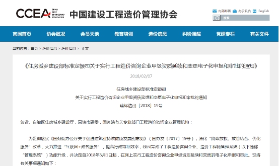 【綿陽正信公司·綜合部消息】按中國造價(jià)工程師管理協(xié)會(huì)2018年2月7日發(fā)文《住房城鄉(xiāng)建設(shè)部標(biāo)準(zhǔn)定額司關(guān)于實(shí)行工程造價(jià)咨詢企業(yè)甲級(jí)資質(zhì)延續(xù)和變更電子化申報(bào)和審批的通知》,造價(jià)咨詢企業(yè)申請(qǐng)資質(zhì)延續(xù)或變更,需通過住房城鄉(xiāng)建設(shè)部官方網(wǎng)站辦事大廳專欄登錄管理系統(tǒng),按照系統(tǒng)提示要求填寫有關(guān)信息,并上傳申報(bào)材料掃描件。我公司造價(jià)資質(zhì)于2020年6月17日到期需延續(xù),我公司綜合部積極準(zhǔn)備相關(guān)資料,務(wù)必將延續(xù)工作提前完成。