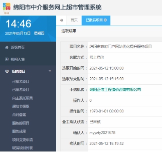 【綿陽正信公司·招標(biāo)部消息】2021年5月12日,我公司在“綿陽市中介服務(wù)網(wǎng)上超市”通過網(wǎng)上競(jìng)價(jià)方式成功中選綿陽市政府門戶網(wǎng)站優(yōu)化提升服務(wù)項(xiàng)目,這也是我公司第一個(gè)在網(wǎng)上超市中選的項(xiàng)目,我們將嚴(yán)格按招投標(biāo)法律法規(guī)及業(yè)主要求做好本次項(xiàng)目的采購(gòu)代理工作。