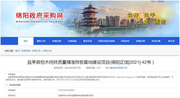 【綿陽正信?招標(biāo)部消息】我公司受鹽亭縣自然資源局委托,對鹽亭縣柏木純林質(zhì)量精準(zhǔn)樣板基地建設(shè)項目擬采用競爭性磋商方式進(jìn)行采購,本項目于2021年09月15日在四川省政府采購網(wǎng)及綿陽市政府采購網(wǎng)公示,預(yù)計于2021年09月27日13:30在綿陽市安昌路17號富臨花園四樓15號開標(biāo)。